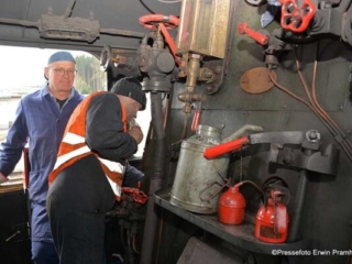 an Bord. Auf der Strecke war auch eine eigene „Lokfeuerwehr“. Sie hatte die Aufgabe, den „Durst“ der Lok mit Hilfe von Hydranten zu löschen und eventuellen Funkenflug gleich in den Griff zu kriegen.