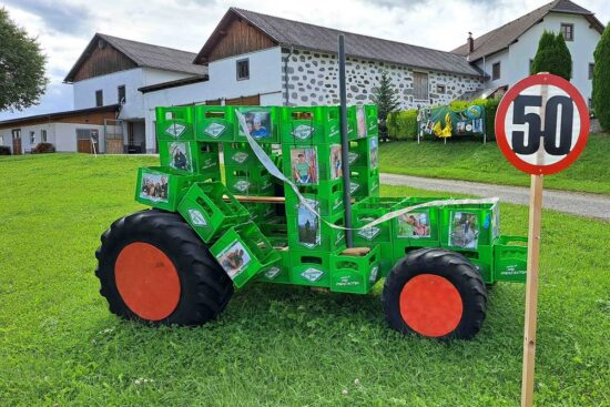 Die grünen LKWs der Freistädter Braucommune sind überall unterwegs und nicht zu übersehen. Jetzt wurde der Prototyp eines Freistädter Bier Traktors bei einem Bauernhof in Lest gesichtet. Ob der Jubilar, der zu seinem 50. Geburtstag dieses Gefährt aus Bierkisten als Geschenk erhielt, die Lizenz zum Nachbau hergibt, ist noch offen.